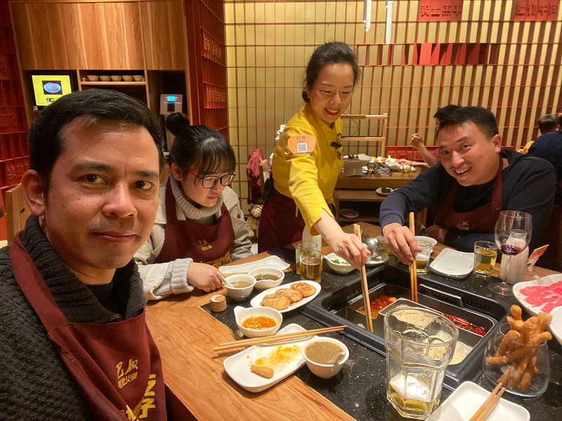Pongthus在广州的两天,最喜欢的食物是火锅(大多数老外似乎都很喜欢火锅),希望下次来中国,再一起吃火锅呢!